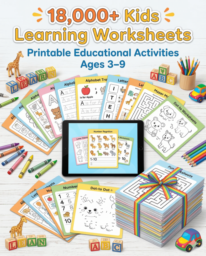 Turn Screen Time Into Fun Learning Time with 18,000+ Printable Worksheets Designed to Engage Your Child and Boost Early Learning Skills!